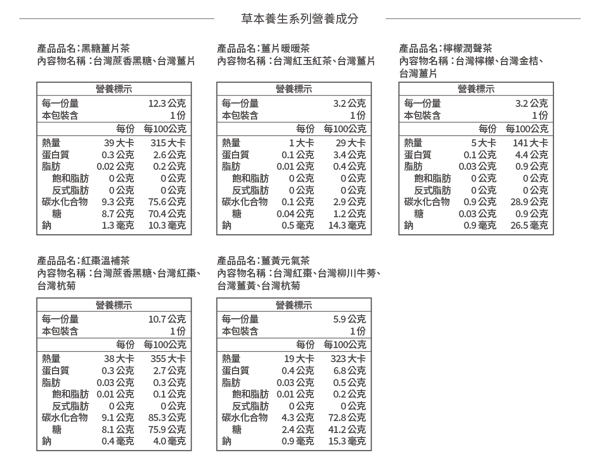小草作草本養生茶採用台灣在地溫補食材,以食補理念開發,讓您輕鬆做好身體調理。